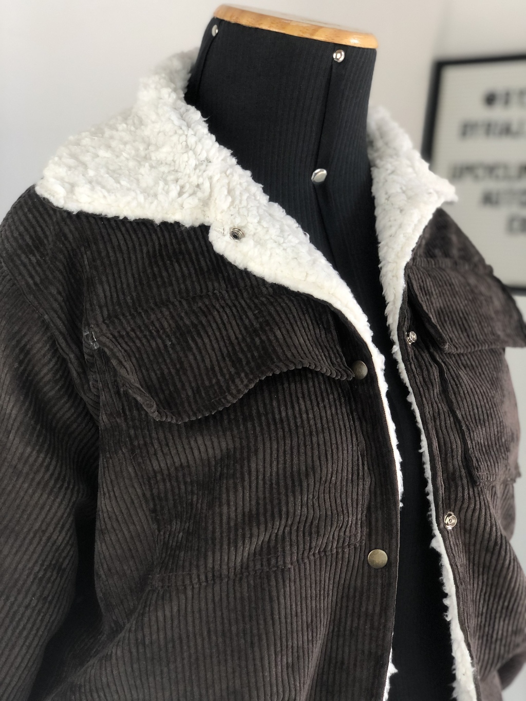 A jaqueta mais linda e estilosa da Riaj forrada em carneirinho na cor marrom